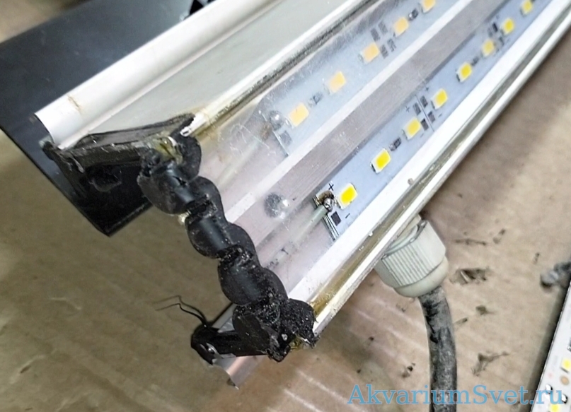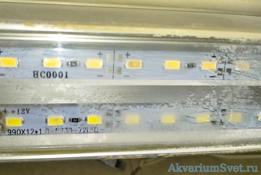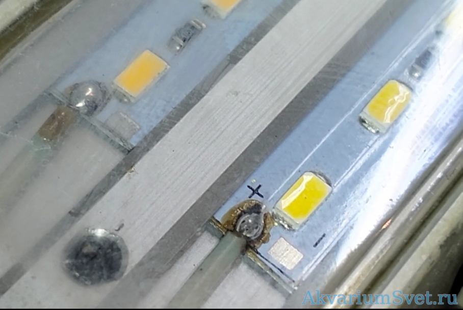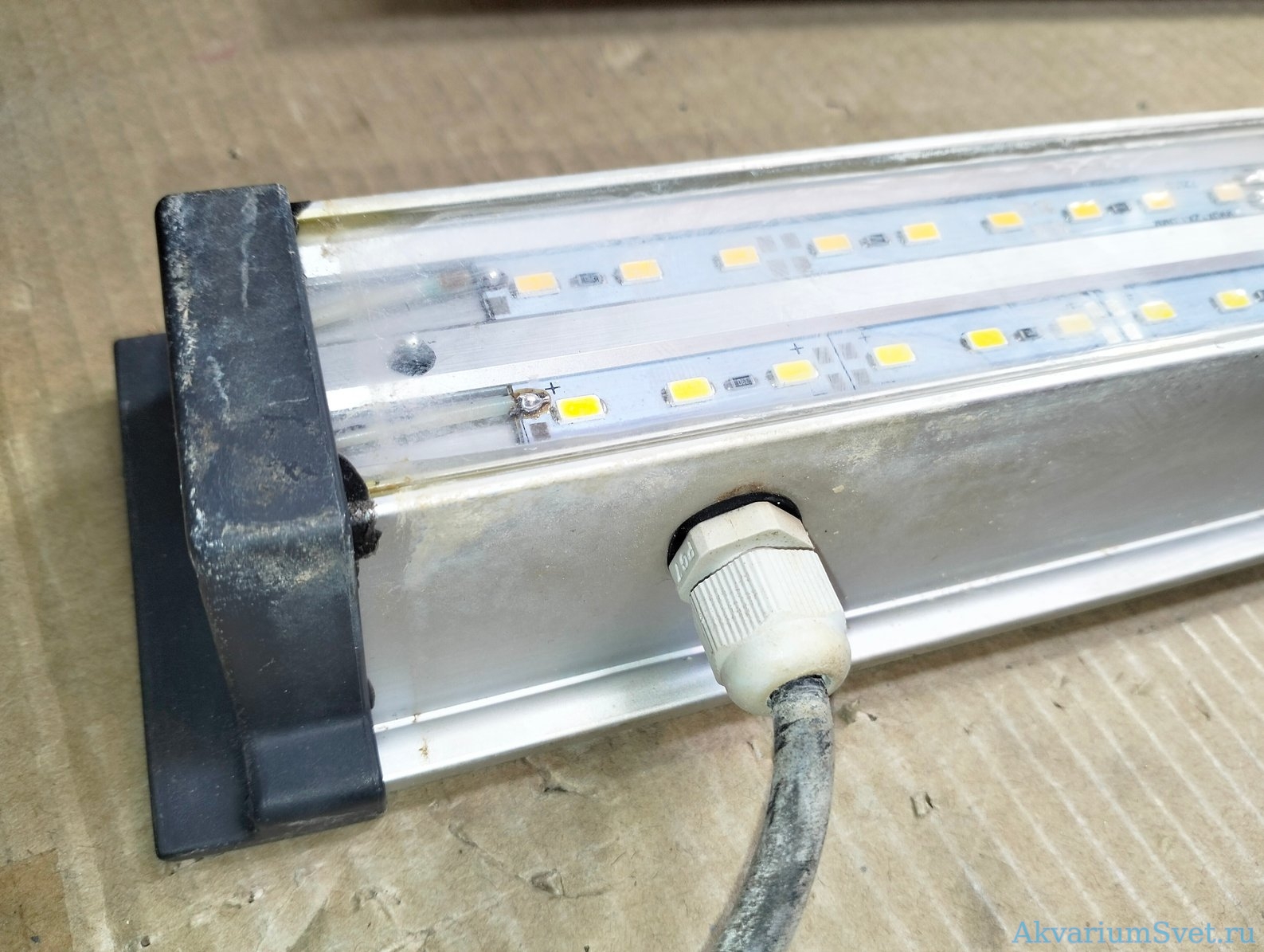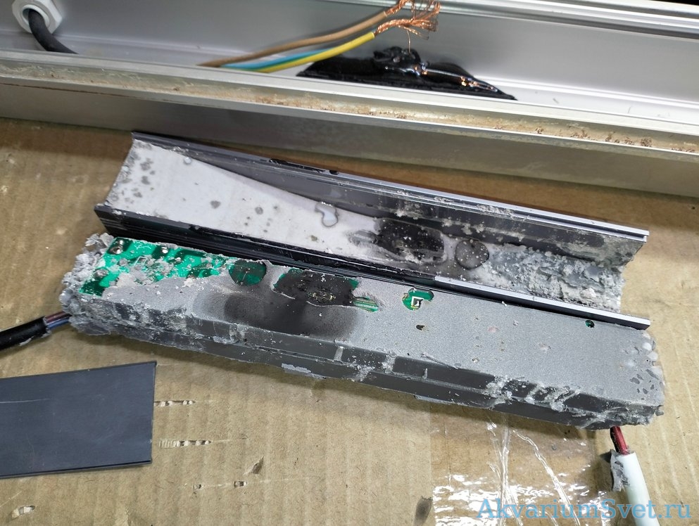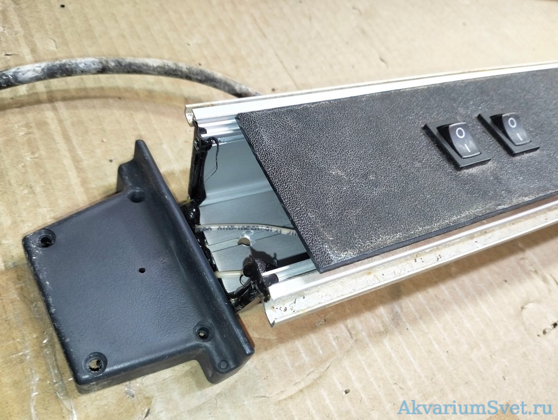 Аквариумный светильник, похожий на фирменный светильник Biodesign, прибыл в мастерскую. Совсем не включается и не светит. ![]() Разбираю светильник. ![]() При срочном ремонте старый силиконовый герметик остаётся на месте. При полноценном ремонте я счищаю его до блеска металла и наношу новый. ![]() Система подключения светильника до ремонта. Каждый выключатель для своей светодиодной линейки. Блок питания работает всегда, если не выключить его из розетки. При выборе вами полноценного ремонта — систему питания переделываю на более правильную. ![]() Видимых повреждений нет. На выходе блока питания 0 вольт. ![]() Соединения проводов в штатном исполнении (до ремонта светильника). ![]() Скрутки (до ремонта). Не лужёные провода требуют пайки. ![]() Ещё одна скрутка. Видно, что медь начала окисляться, надёжность контакта посредственная. ![]() Разбираю блок питания. ![]() Многие блоки питания не могут долгое время работать без нагрузки и выходят из строя. Видны почерневшие участки на плате и внутренней части крышки блока питания. ![]() Один из видов нового блока питания. Можно использовать как один так и два блока питания в одном светильнике. ![]() Светодиодные линейки вставлены в пазы профиля без плотного прилегания для хорошего охлаждения. Диагностика показала, что часть светодиодов уже сгорела. В идеале линейки нужно крепить на теплопроводящий скотч, или термопасту. ![]() Если есть желание линейки можно заменить на более современные и более эффективные. ![]() Защитное оргстекло/поликарбонат/полистирол можно отмыть средством "Накипин", или вовсе заменить на новое. ![]() Сетевой шнур и кабельный ввод можно оставить штатные, или заменить на новые. ![]() Выключатели тоже. ![]() Аквариумный светильник "псевдо Biodesign" после срочного ремонта. ![]() Срочным будет ремонт, или полноценным выбираете и заказываете вы. Стоимость быстрого ремонта ниже стоимости нового светильника, а полноценного ремонта — выше. Более наглядно о ремонте данных светильников я рассказываю в видеоролике в группе ВКонтакте. |