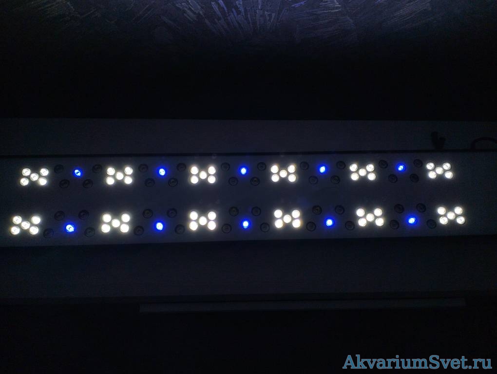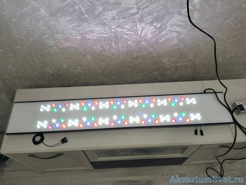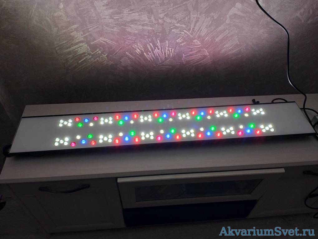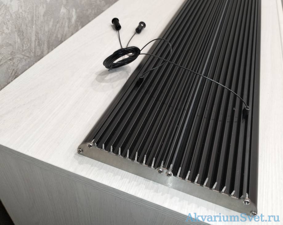 Аквариумный светильник 120 см. 9450 лм.![]() Крепление светильника над аквариумом при помощи подвесов-тросов. Длина тросов 150 см., регулируются. ![]() Так как аквариум нестандартной формы, в светильнике используются три вида линз. ![]() Вот для такого аквариума и был изготовлен светильник. При помощи линз удалось добиться правильного освещения в широкой и узкой частях аквариума. Во время проектирования была учтена и приличная высота аквариума. ![]() Светильник оснащён контролёром wi-fi, управляемым через веб-интерфейс в любом браузере. ![]() С помощью контроллера можно управлять разными цветами светодиодов. ![]() Можно настраивать время восхода и заката меняя яркость и время включения каждого цвета по отдельности. ![]() Всего в светильнике 110 светодиодов 3W разделённых на 5 каналов: 1. Белый 8000К 2. Белый 6500К 3. Красный (2 вида) 4. Синий (2 вида) 5. Зелёный ![]() Светодиоды работают на токе 1/2 от максимально допустимого, поэтому даже на яркости 100% нагрев корпуса светильника не выйдет за пределы 45°C при температуре окружающей среды 25°C. ![]() Работая в "щадящем" режиме светодиоды прослужат очень долго. ![]() На фотографиях — различные комбинации включения цветов светодиодов. ![]() Видеообзор данного светильника — https://vk.com/wall-173817090_1872 ![]() Все фотографии этого светильника в хорошем качестве — https://vk.com/album-173817090_308484382 ![]() ![]() |